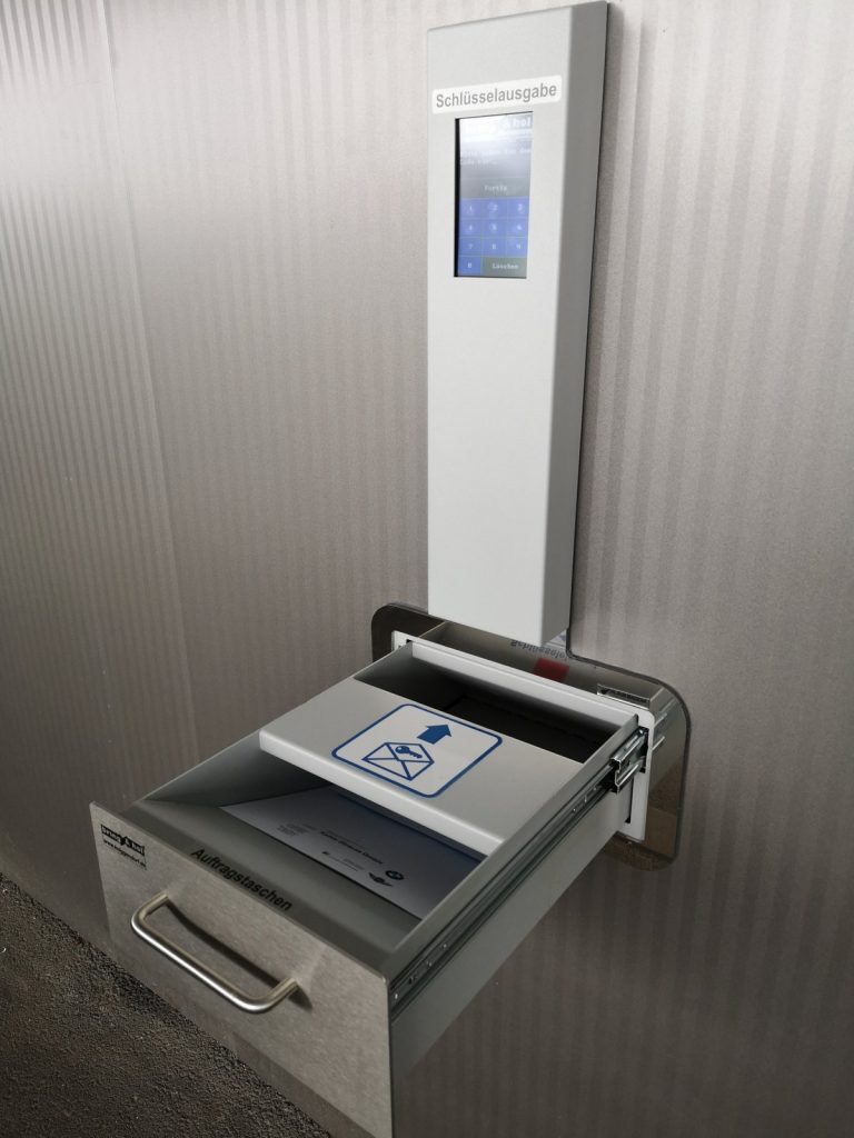 Det nya BRAsafe key transfer system erbjuder dina kunder den servicenivå de kan förvänta sig – hämta bilen vid en tidpunkt som passar dem. Detta är ett mycket säkert system eftersom nycklarna förvaras inne i byggnaden och när fordonet är klart för utlämning skickar du helt enkelt en pinkod till kunden via telefon, e-post eller sms. Vid upphämtning fyller de sedan i sin kod i panelen och får ut sin nyckel. Ännu enklare är det att på ett säkert sätt lämna in nycklarna när bilen ska in på service eller om hyrbilen ska tillbaka – öppna bara lådan och lägg in nyckeln och stäng lådan så är nyckeln tryggt förvarad inomhus i ett säkerhetsskåp tills ni hämtar nyckeln på morgonen igen.